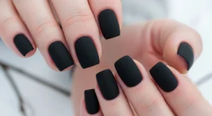 Matte black nails create a bold but soft look. They’re perfect for evening events or minimal outfits.